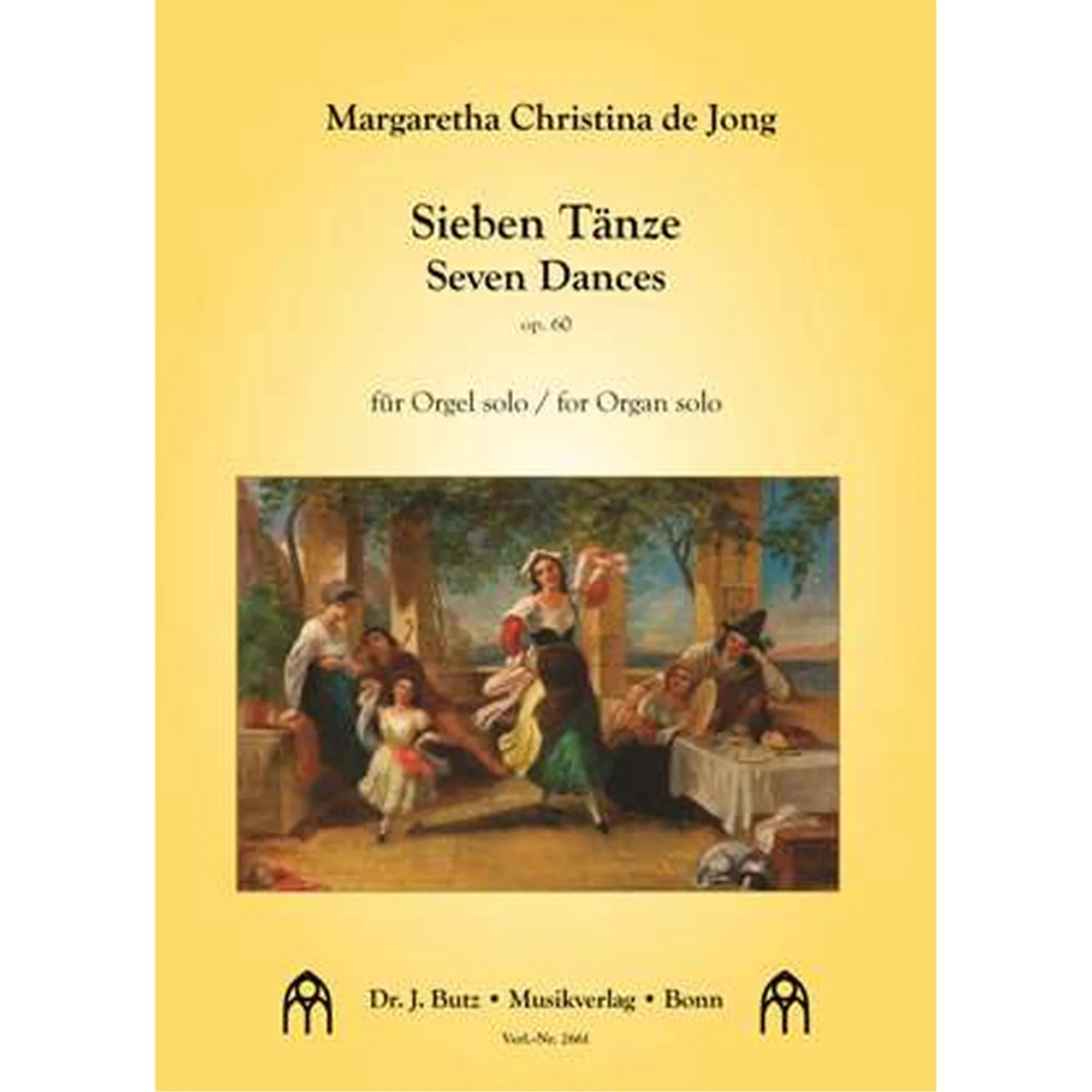 Nicht ohne Grund wurde M. Chr. de Jong in einer niederländischen Zeitung einmal als „de kameleon van de Nieuwe Kerk“ (das Chamäleon der „Neuen Kirche“ in Middelburg) bezeichnet: Wer sie bisher als versierte Komponistin von Orgelwerken barocker und romantischer Tonsprache kannte, wird Ohren machen über die Töne, die sie hier der Orgel entlockt. Die Sieben Tänze strotzen geradezu vor Freude an Klang und Spiel: ein swingender Foxtrot, ein mitreißender Charleston, aber auch verträumt feinsinnige Sätze wie eine Sicilienne und eine Valse triste. Mediterranes und lateinamerikanisches Kolorit liefern Saltarello, Tango und Fandango. Souverän beherrscht De Jong dabei sämtliche Idiome und sorgt dafür, dass Spieler wie Zuhörer mit Spaß auf ihre Kosten kommen werden.