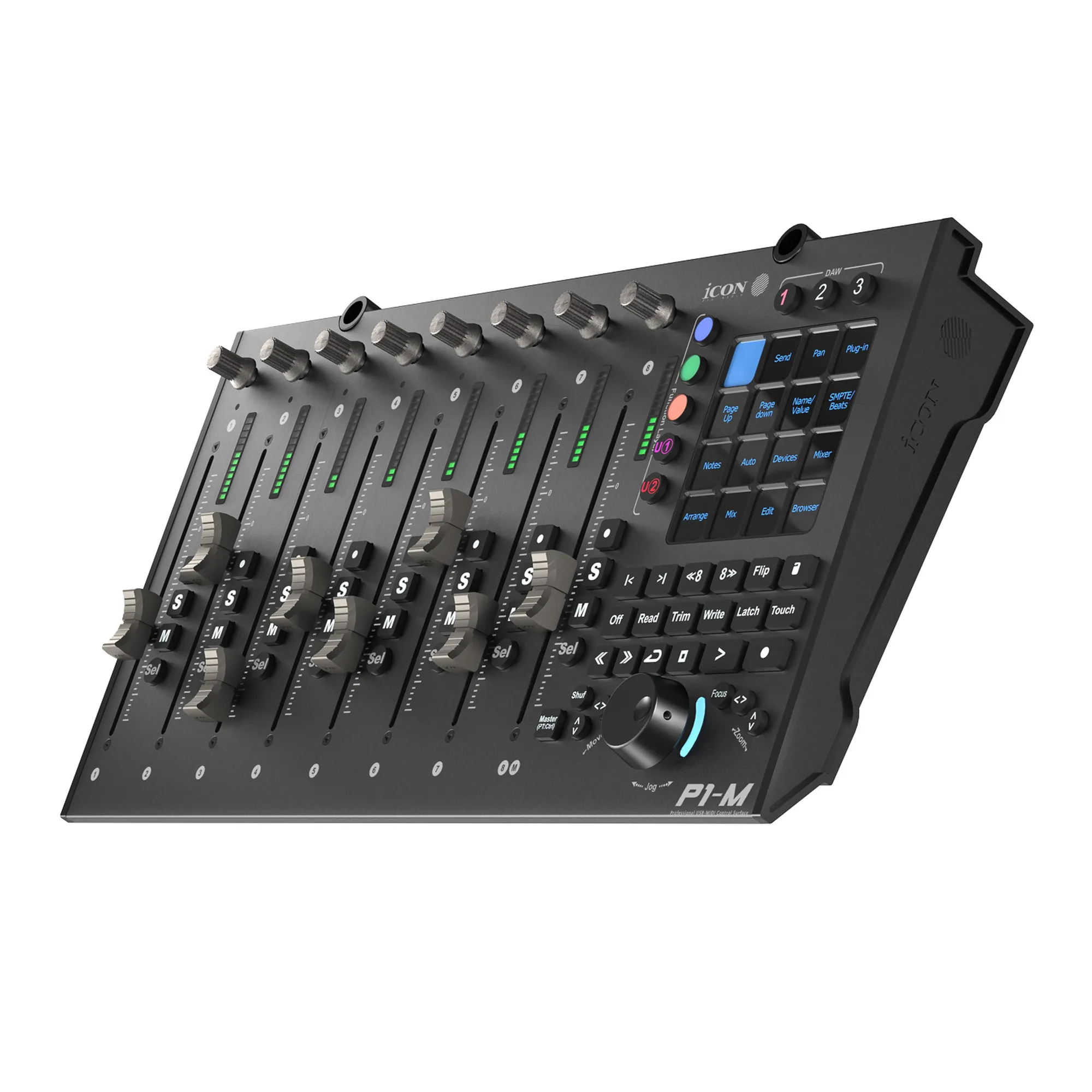 Setzen Sie Ihre Kreativität frei. Das P1-M hat genau die richtige Größe für Ihren Arbeitsbereich und bietet Ihnen eine taktile Steuerung mit Fadern, Reglern und DAW-Funktionen direkt an Ihren Fingerspitzen.