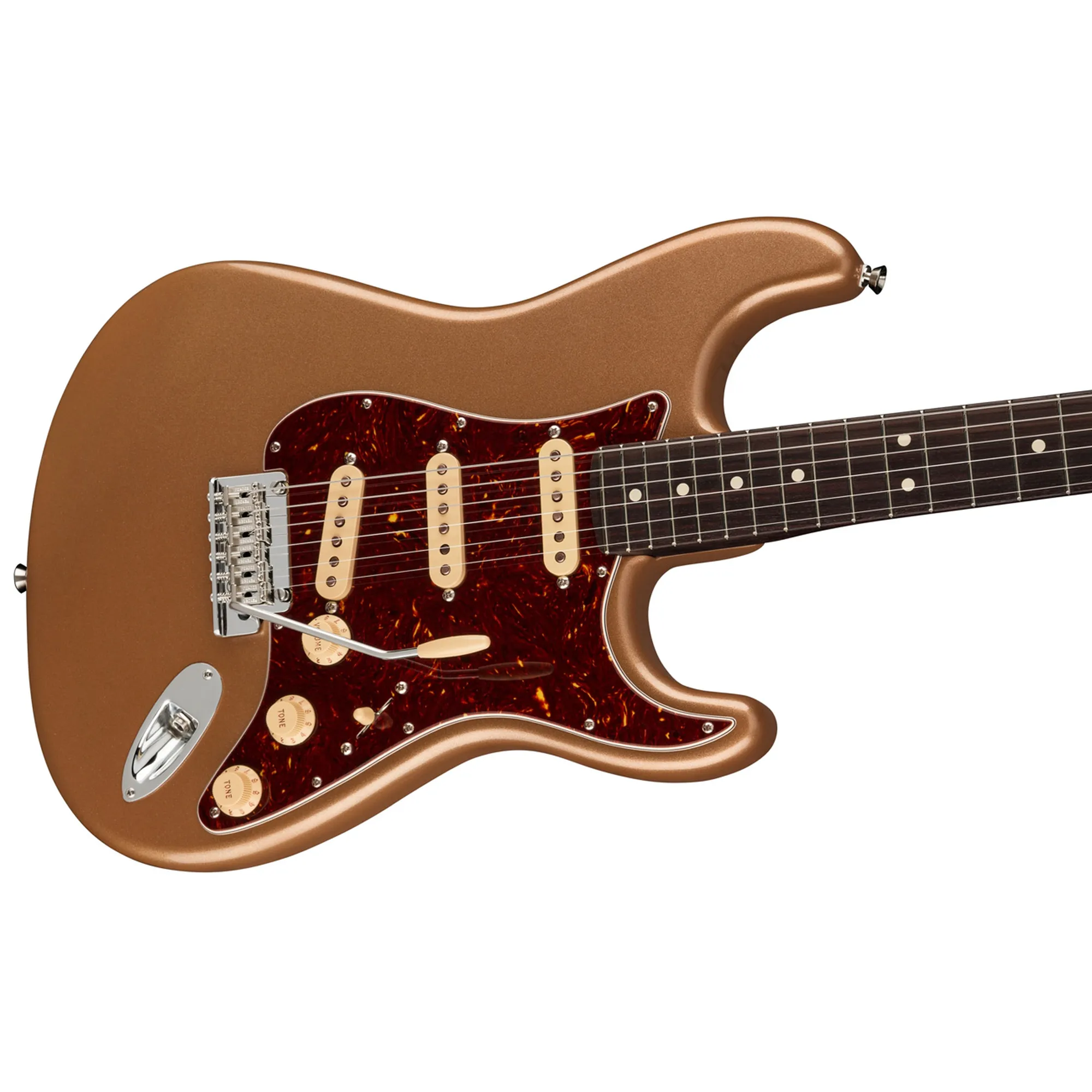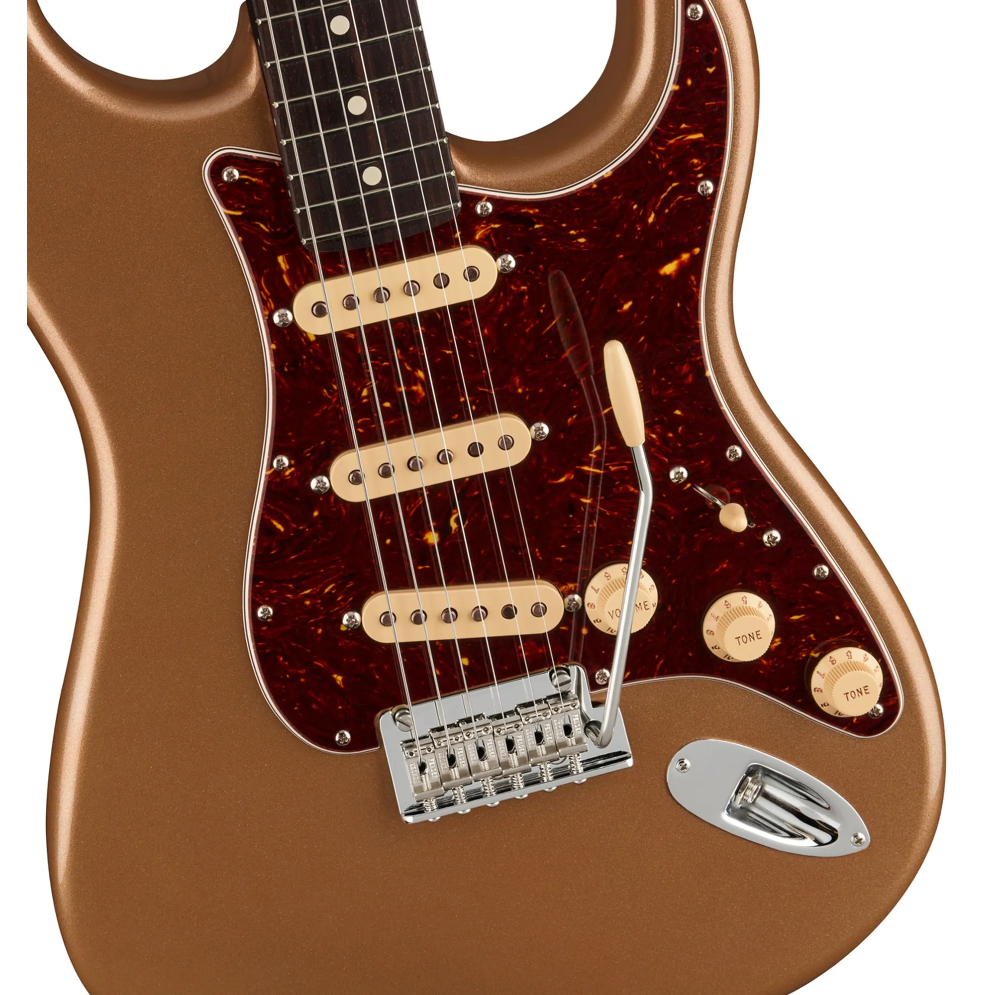 Die neuen V-Mod II Single Coils sind artikulierter denn je, behalten aber ihren glockigen Chime und viel Wärme. Das aufgewertete 2-Punkt Tremolo mit kaltgerolltem Stahlblock verbessert Sustain, Klarheit und High-End Sparkle.