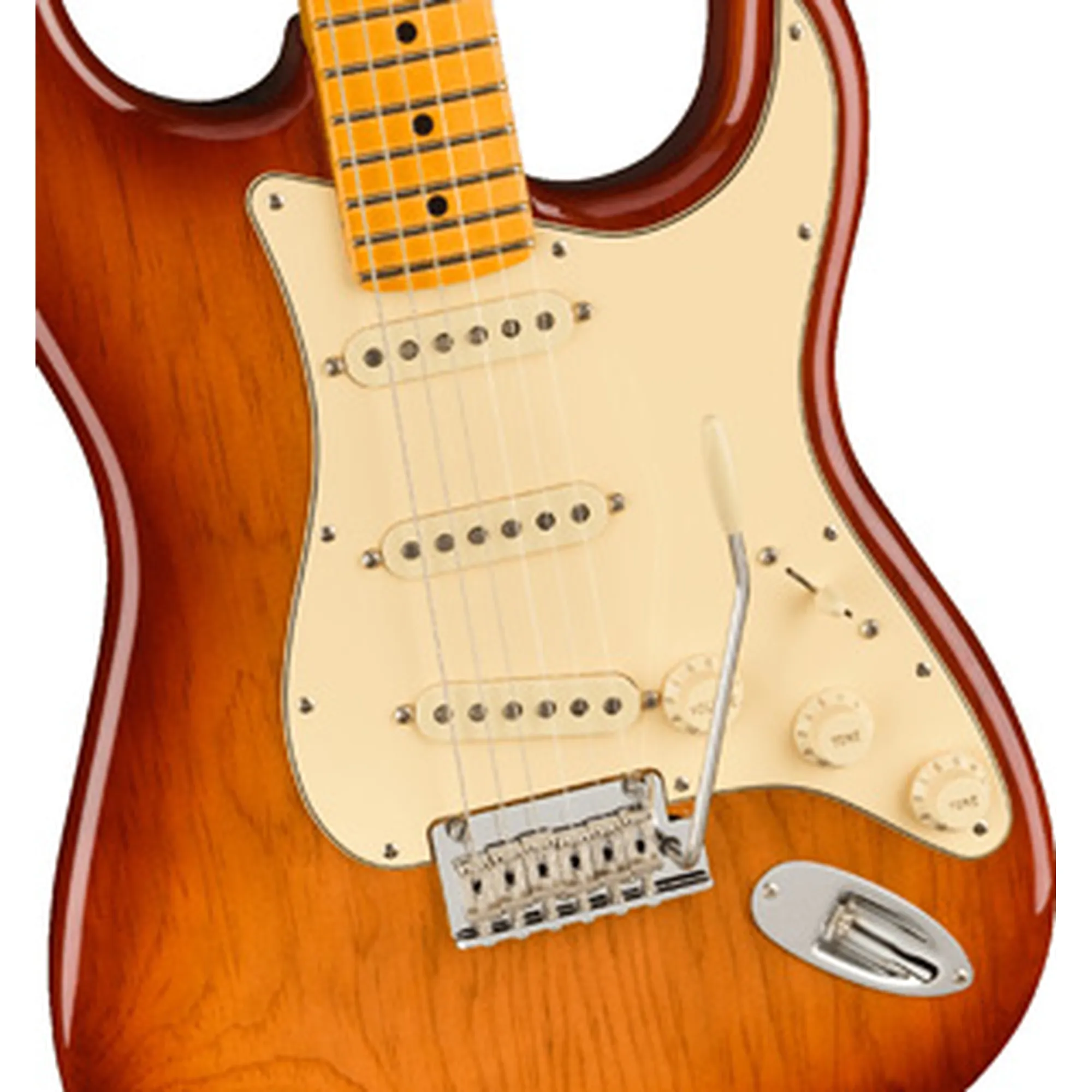 Die neuen V-Mod II Single Coils sind artikulierter denn je, behalten aber ihren glockigen Chime und viel Wärme. Das aufgewertete 2-Punkt Tremolo mit kaltgerolltem Stahlblock verbessert Sustain, Klarheit und High-End Sparkle.