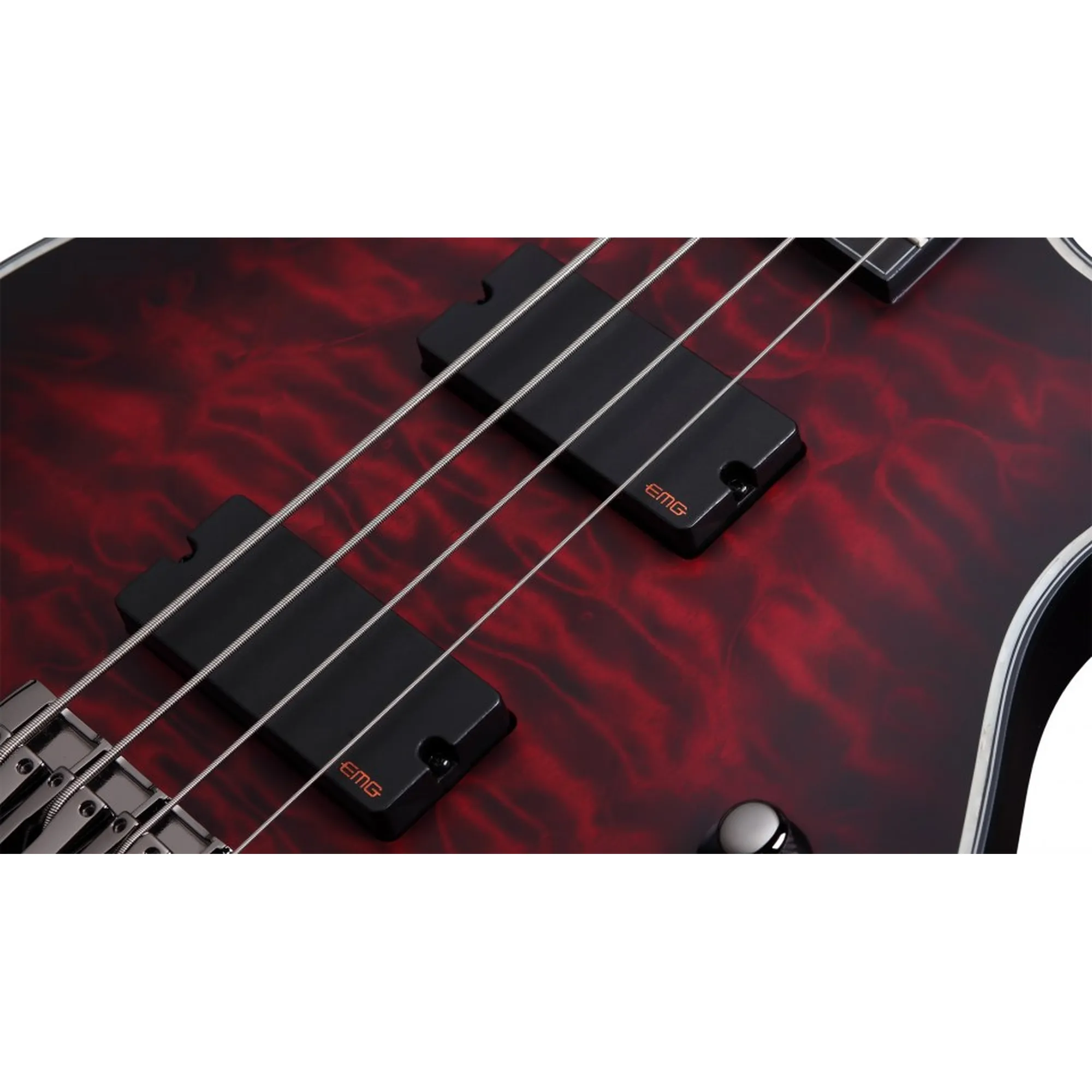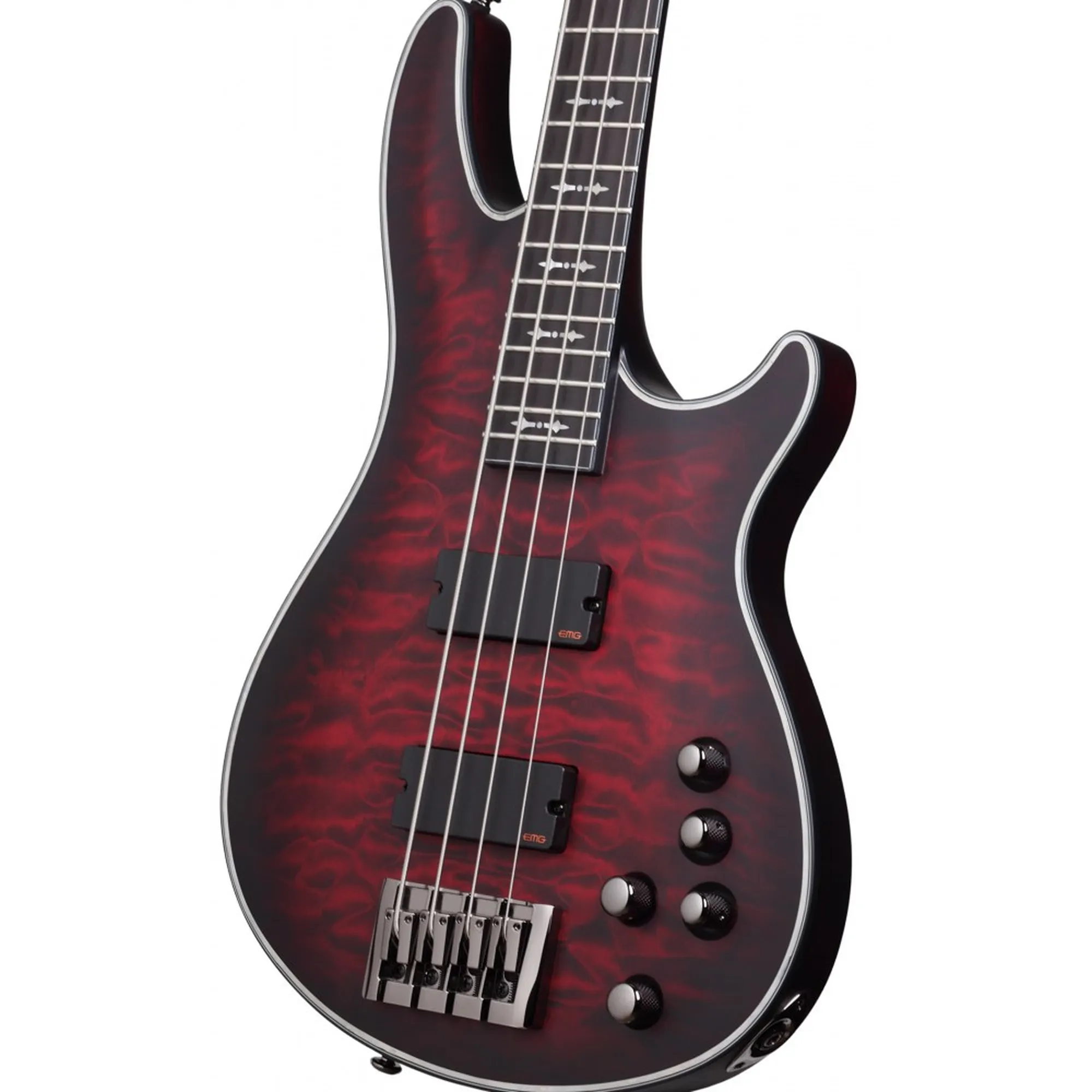 Der Schecter Hellraiser Extreme 4 Bass ist mit den splittbaren EMG TW Pickups, einer 18 Volt Elektronik und einem 3-Band EQ ausgestattet. Der Hals aus Ahorn und Walnuß geht durch den Body aus Mahagoni mit Ahorndecke durch und verleiht dem Bass einen hohen Anteil an Sustain. Das Satin Finish und die Black Chrome Hardware runden die Optik edel ab.
