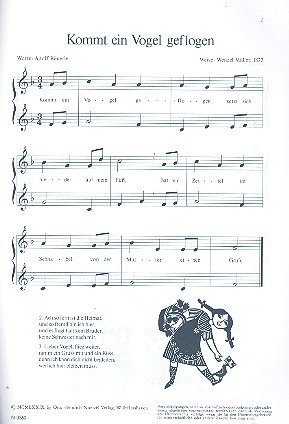 ABC die Katze lief im Schnee Alle meine Entchen Alle Vögel sind schon da Alles neu macht der Mai Auf unsrer Wiese gehet was backe backe Kuchen Der Kuckuck und der Esel Die Tiroler sind lustig Ein Männlein steht im Walde ein Vogel wollte Hochzeit machen Es klappert die Mühle Es tanzt ein Bibabutzemann Fuchs du hast die Gans gestohlen Hänsel und Gretel Häschen in der Grube Hopp hopp hopp Kommt ein Vogel geflogen Kuckuck Kuckuck Laterne Laterne Sonne Mond und Sterne Liebe Schwester tanz mit mir Ringel ringel Reihe Sommerlied Summ summ summ Suse liebe Suse Tanzlied Winter ade Wir sind die kleinen Musici Zwischen Berg und tiefem tiefem Tal