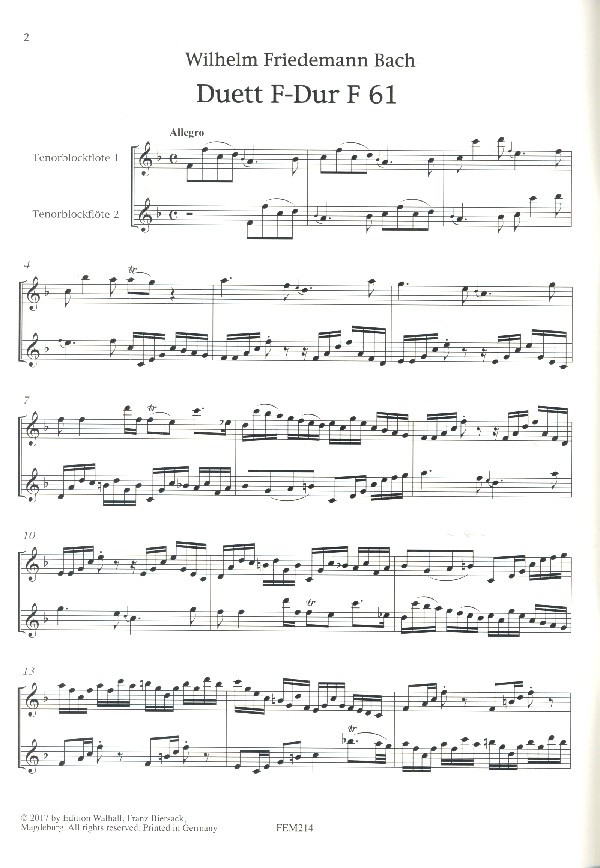 Flautando Edition Wehlte, Adrian, arr. Duett F-Dur F61 Duett g-Moll F62