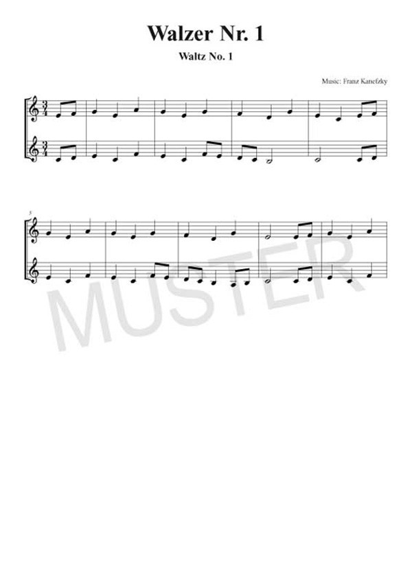 Kanefzky, Franz, ed Eine tolle Sammlung von 100 sehr leichten bis leichten Duetten für 2 Violinen - alle in der 1. Lage spielbar. Kapitel 1 - Sehr leicht Melodie Wiegenlied Kleine Suite Lied Bauerntanz Walzer Nr. 1 Marsch Thema und Variationen Choral Tänzchen Volkslied Dorische Melodie Lustig û Traurig Volksweise im 5/4-Takt Tanzreigen Dorffest Polka Nr. 1 Regentropfen Sonatine Sonntagsimpressionen Wanderburschenlied Kuckucksdialog Kapitel 2 - Leicht Wasserspiele Ländler Nr. 1 Romanze Zwiefacher Entrée Bourée Polka Nr. 2 Sarabande Neuer Flohwalzer Abendweise Fugette Rondo Walzer Nr. 2 Schlaflied Pavane Gavotte Ländler Nr. 2 Irish-Dance Im Orient Intermezzo Valse concertante Scherzo Caterpillar's Sunday Walk Kapriolen Ragtime Oldtimer-Rag Good Mood Tango-Night Happy Horse Playground Dixie Day Blues Lieder aus aller Welt Morning Has Broken Die letzte Rose Rolling Home Candlelight Waltz Verwehter Glockenklang La Sorella Amazing Grace Stenka Rasin Swanee River So nimm denn meine Hände Guten Abend, gut' Nacht Träumerei Romanze Barcarole An der schönen blauen Donau Solveigs Lied Donauwellen Largo (G. F. Händel) Gefangenenchor Largo (A. Dvorák) O wie so trügerisch Santa Lucia Das einsame Glöckchen Oh Danny Boy Greensleeves Tristesse Walzer (J. Brahms) Für Elise Plaisir D'Amour Die Moldau Taiga-Melodie Schlafe, mein Prinzchen, schlaf ein Oh Happy Day Weihnachtslieder Am Weihnachtsabend Am Weihnachtsbaum die Lichter brennen Ihr Kinderlein kommet Es ist ein Ros' entsprungen Hark, The Herald Angels Sing Kling, Glöckchen We Wish You A Merry Christmas Kommet, ihr Hirten Leise rieselt der Schnee O du fröhliche O Tannenbaum Stille Nacht, heilige Nacht Tochter Zion