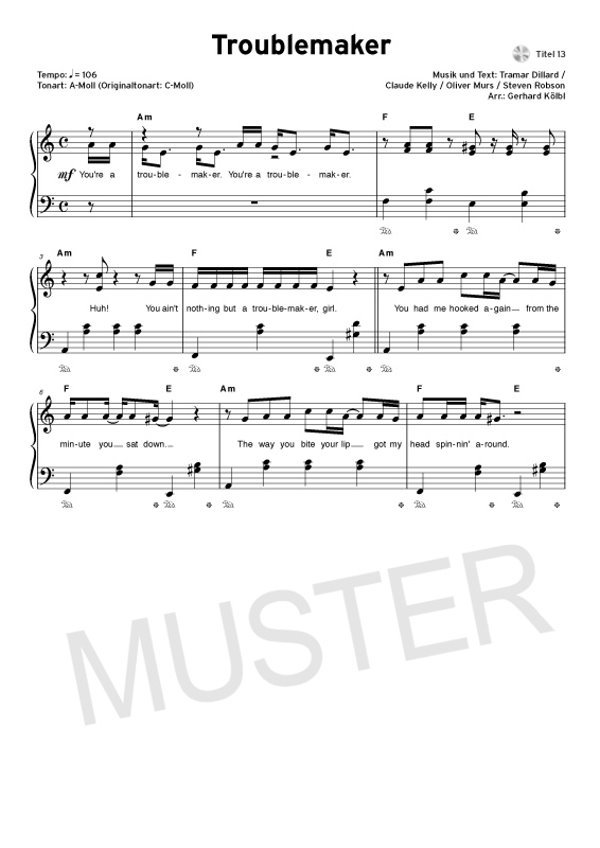 Troublemaker (Olly Murs feat. Flo Rida) Locked out of Heaven (Bruno Mars) Hall of Fame (The Script Feat. Will. I. Am) Altes Fieber (Die Toten Hosen) Everything at once (Lenka) People help the People (Birdy)