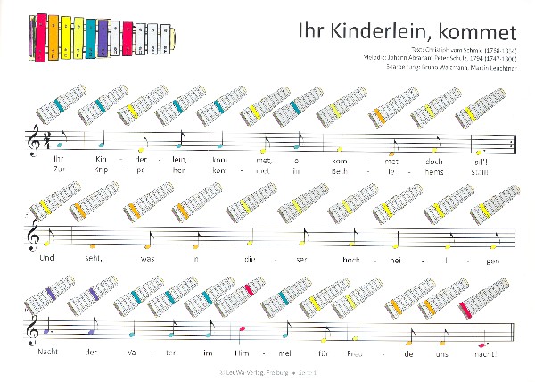 Leuchtner, Martin, ed Waizmann, Bruno, ed mit einzigartiger Notationsergänzung für Anfänger ab 5 Jahren CD als Instrumentalversion zum Mitsingen und Anhören sowie als Playback mit Online-Link für Ergänzungen, Videos, Audio-Tracks Ihr Kinderlein kommet Schneeflöckchen Weißröckchen Vom Himmel hoch da komm ich her Alle Jahre wieder Am Weihnachtsbaum die Lichter brennen Morgen Kinder wird's was geben Kommet ihr Hirten Leise rieselt der Schnee Morgen kommt der Weihnachtsmann Still still still O du fröhliche Lasst uns froh und munter sein Laterne Laterne Sankt Martin Stille Nacht heilige Nacht Zu Bethlehem geboren O Tannenbaum Kling Glöckchen kling Ich geh mit meiner Laterne Was soll das bedeuten Fröhliche Weihnacht überall Süßer die Glocken nie klingen Nun singet und seid froh Jingle Bells