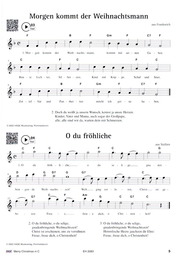 Nachfolgeartikel für EH1083 Die 31 beliebtesten und schönsten Weihnachtslieder Alle Jahre wieder Amen Es ist ein Ros entsprungen Es ist für uns eine Zeit angekommen Es wird scho glei dumpa Freu dich Erd und Sternenzelt Fröhliche Weihnacht überall Go tell it on the Mountain Hark the herald Angels sing Heidschi bumbeidschi Herbei o ihr Gläubigen Ihr Kinderlein kommet Jingle Bells Joy to the World Kling Glöckchen Komm lass uns träumen Kommet ihr Hirten Lasst uns froh und munter sein Leise rieselt der Schnee Let it snow Morgen Kinder wird's was geben Morgen kommt der Weihnachtsmann O du Fröhliche O Tannenbaum Schneeflöckchen Weissröckchen Stille Nacht Süsser die Glocken Vom Himmel hoch We wish you a merry Christmas Winter Wonderland Zu Bethlehem geboren