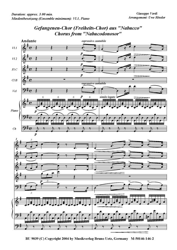Rössler, Uwe, Arr. Genfangenen Chor 2. Violine, Kontrabass, CB ad. lib.