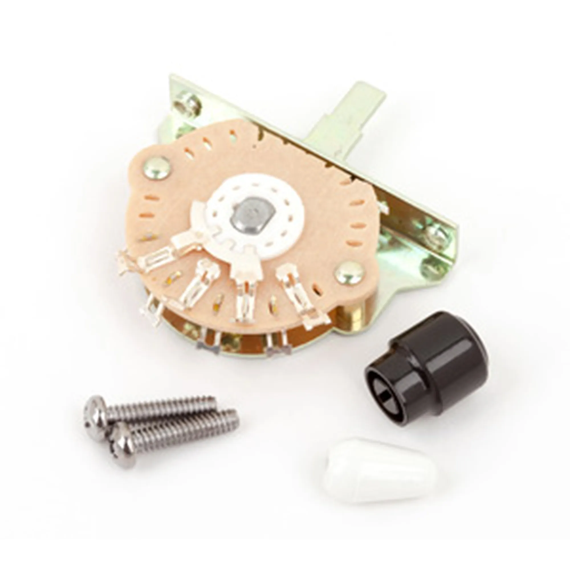 3-Wege-Klingenschalter im Vintage-Stil zur Pickup-Anwahl. Passend für Telecaster und Stratocaster Modelle der Serien American Vintage, American Standard, American Special, Standard, Deluxe und Classic. Mitgeliefert wird je ein weißes Griffstück für die Stratocaster und ein schwarzes für die Telecaster.