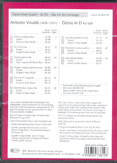 Gloria D-Dur RV589 - Chorstimme Alt
