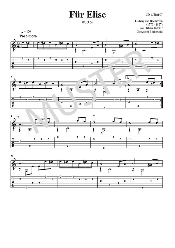 Jäckle, Klaus, arr. Borkowski, Krzysztof, arr. Die 100 schönsten Melodien von Klassik bis Pop Barcarole - Jacques Offenbach Adagio Cantabile - Ludwig van Beethoven Freude schöner Götterfunken - Ludwig van Beethoven Der Frühling - Antonio Vivaldi Plaisir d'Amour - Jean Martini Tristesse - Frédéric Chopin Für Elise - Ludwig van Beethoven Candlelight Waltz - Schottisches Volkslied Guten Abend, gut' Nacht - Johannes Brahms Abendsegen - Engelbert Humperdinck Andante - Wolfgang Amadeus Mozart Die Moldau - Bedrich Smetana Sinfonie Nr. 5 - Ludwig van Beethoven Nocturne - Frédéric Chopin Largo - Georg Friedrich Händel Thema (Klavierkonzert Nr. 1) - Pjotr Tschaikowski Kanon in D-Dur - Johann Pachelbel Romanze (Eine kleine Nachtmusik) - Wolfgang Amadeus Mozart Morgenstimmung - Edvard Grieg An der schönen blauen Donau - Johann Strauß, Sohn Gefangenenchor - Giuseppe Verdi Ave Maria - Johann Sebastian Bach Liebestraum Nr. 3 - Franz Liszt O wie so trügerisch - Giuseppe Verdi Walzer - Johannes Brahms Thema (Schwanensee) - Pjotr Tschaikowski Largo - Antonín Dvorák Solveigs Lied - Edvard Grieg Hochzeitsmarsch - Felix Mendelssohn Bartholdy Träumerei - Robert Schumann Lieder aus aller Welt / Evergreens Greensleeves - Altenglisches Volkslied Santa Lucia - Neopolitanisches Volkslied Danny Boy - Edward Weatherly Swanee River - Stephen C. Foster La Sorella - Italienisches Volkslied Amazing Grace - John Newton Morning Has Broken - Gälisches Volkslied Das einsame Glöckchen - Russisches Volkslied Taiga-Melodie - Russisches Volkslied Verwehter Glockenklang - Russisches Volkslied Schlafe, mein Prinzchen, schlaf ein - Bernhard Flies Stenka Rasin - Russisches Volkslied Dark Eyes - Russisches Volkslied Spanische Romanze - Traditional Malagueña - Traditional Recuerdos de la Alhambra - Francisco Tárrega Asturias - Isaac Albéniz Summertime - George Gershwin Guantanamera - Seeger / Orbon / Martí / Angulo / Diaz El Condor Pasa - Daniel A. Robles / Jorge Milchberg Manha da Carnaval - Bonfá / Maria Aura Lee - bekannt durch: Elvis Presley Dolannes Melodie - Paul de Senneville O Mia Bella Napoli - Gerhard Winkler O Sole Mio - Eduardo di Capua Mack The Knife - Kurt Weill (bekannt durch: Frank Sinatra) My Way - bekannt durch: Frank Sinatra La Paloma - bekannt durch: Freddy Quinn Minor Swing - Django Reinhardt Scarborough Fair - bekannt durch: Simon & Garfunkel Zum Geburtstag viel Glück - Traditional Pop / Rock Hits Every Breath You Take - bekannt durch: The Police Knockin' On Heaven's Door - bekannt durch: Bob Dylan One Moment In Time - bekannt durch: Whitney Houston Yellow Submarine - bekannt durch: The Beatles Yesterday - bekannt durch: The Beatles Let It Be - bekannt durch: The Beatles Ain't No Sunshine - bekannt durch: Bill Withers No Woman, No Cry - bekannt durch: Bob Marley Über den Wolken - bekannt durch: Reinhard Mey House Of The Rising Sun - bekannt durch: The Animals Are You Lonesome Tonight - bekannt durch: Elvis Presley Summer Of 69 - bekannt durch: Bryan Adams As Tears Go By - bekannt durch: Rolling Stones Lambada - bekannt durch: Kaoma Fallen Leaves - bekannt durch: Billy Talent Bridge Over Troubled Water - bekannt durch: Simon & Garfunkel Streets Of London - bekannt durch: Ralph McTell Volare (orig. Nel Blu Di Pinto Di Blu) - bekannt durch: Gipsy Kings Samba Pa Ti - bekannt durch: Santana Hotel California - bekannt durch: The Eagles Wake Me Up When September Ends - bekannt durch: Green Day Tears In Heaven - bekannt durch: Eric Clapton Behind Blue Eyes - bekannt durch: Limp Bizkit Shoot The Moon - bekannt durch: Norah Jones Nights In White Satin - bekannt durch: The Moody Blues A Whiter Shade Of Pale - bekannt durch: Procul Harum River Flows In You - bekannt durch: Yiruma Without You - bekannt durch: Mariah Carey Somethin' Stupid - bekannt durch: Frank & Nancy Sinatra Nothing Else Matters - bekannt durch: Metallica Is There Anybody Out There? - bekannt durch: Pink Floyd Why Worry - bekannt durch: Dire Straits Losing My Religion - bekannt durch: R.E.M. Film / Musical Don't Cry For Me Argentina - Evita Moon River - Frühstück bei Tiffany As Time Goes By - Casablanca Gladiator - Gladiator The Pink Panther - Der rosarote Panther Speak Softly Love - Der Pate