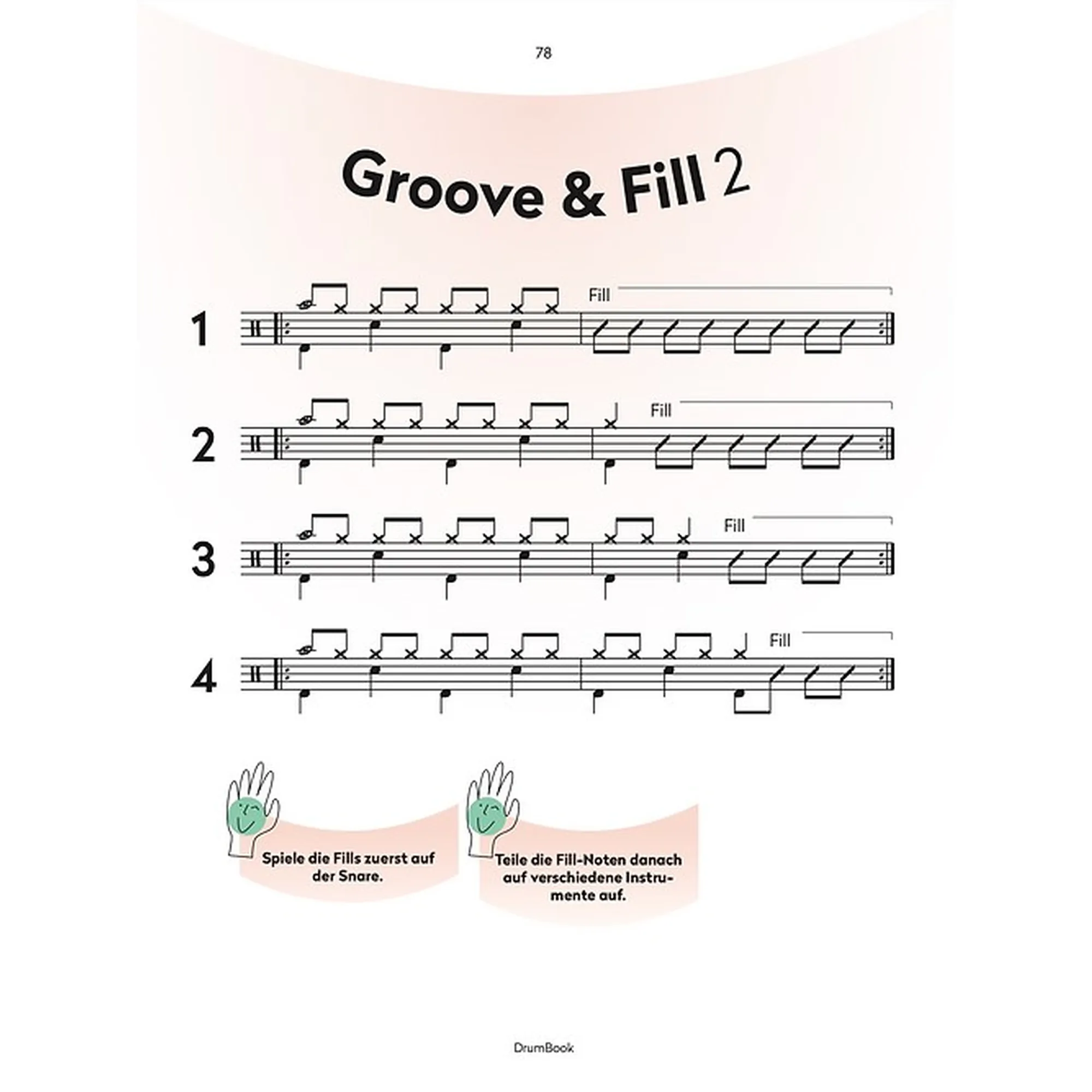 Von Grund auf ist das Buch sehr intuitiv aufgebaut, sodass auch die kleinen Drummer den Einstieg erfolgreich meistern. Mit Tonis Trommelbuch feiern die Kinder stetig kleine Erfolgserlebnisse und bleiben daher motiviert. Für die individuelle, kreative Entwicklung der Lernenden sorgen Freiräume, welche auch die Lehrpersonen mitgestalten können.
