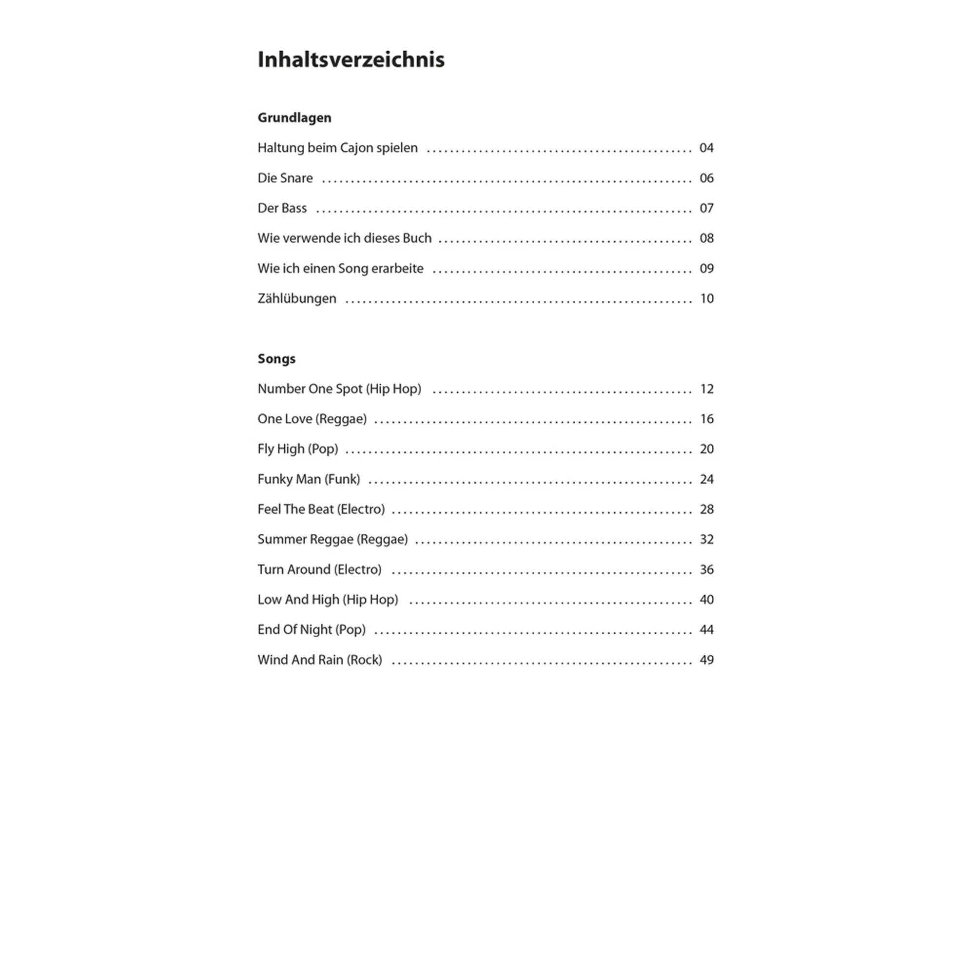 In seiner langjährigen Tätigkeit als Cajon-Lehrer und Workshop-Dozent hat Uwe Pfauch den Bedarf an interessantem, einfach spielbarem und bühnentauglichem Songmaterial für Cajon-Einsteiger erkannt. Das „Erlebnis Cajon Songbook“ schließt diese Lücke mit 10 tollen Stücken aus den Bereichen Hip Hop, Reggae, Pop, Rock, Electro und Funk. Das eigens entwickelte farbige Spielkonzept ist ohne musikalische Vorkenntnisse einfach zu lesen und sorgt so für schnelle Lernerfolge. Nach einer kurzen Erklärung der Grundschläge geht es sofort mit dem ersten Stück los.
